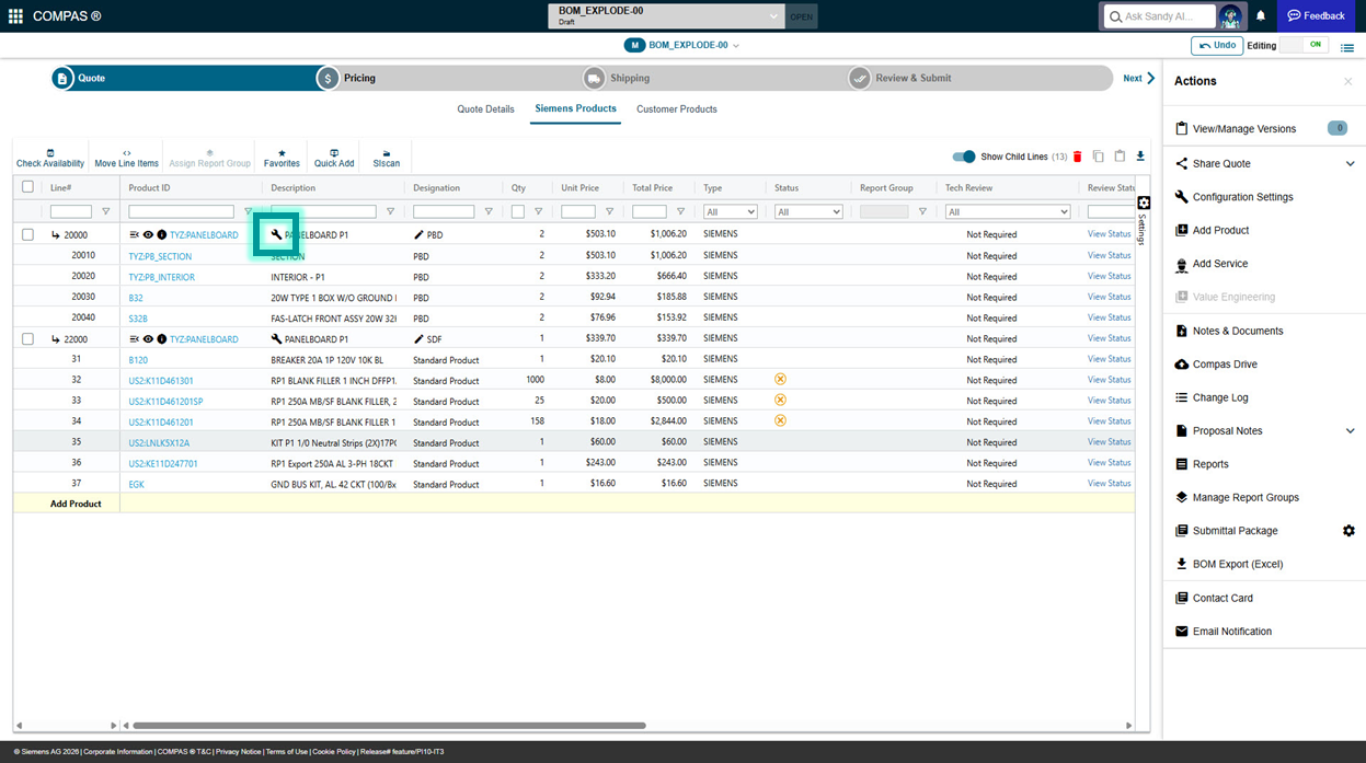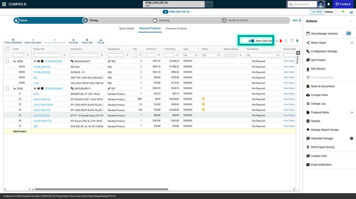 •Only child lines will be submitted for order, the main line item will not pass, as Siemens will be providing the parts for configured lines, but not assembling in the factory.