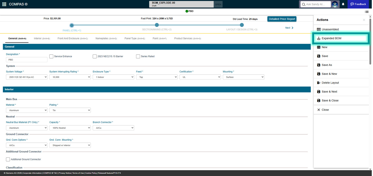 •Click the “Expanded BOM” option in the actions menu to open the expanded BOM
