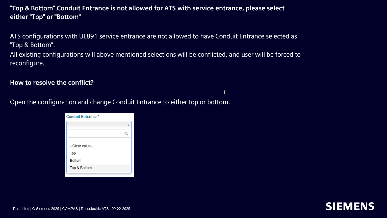 Redline Russelectric ATS - Service Entrance Conduit Restrictions